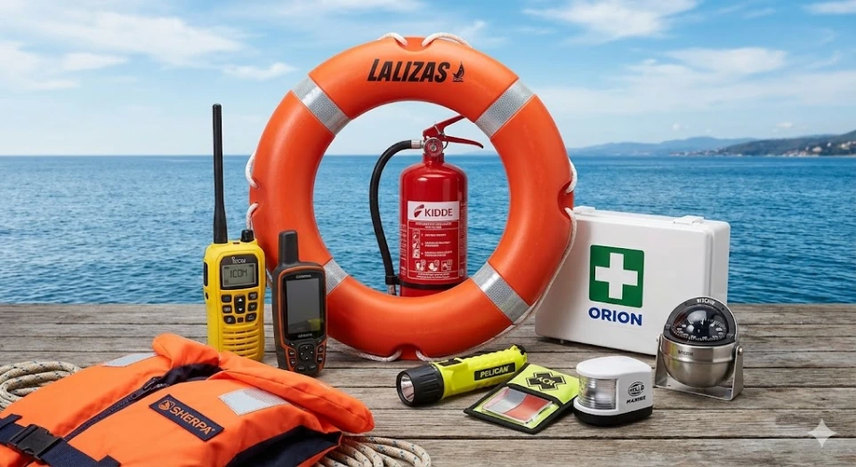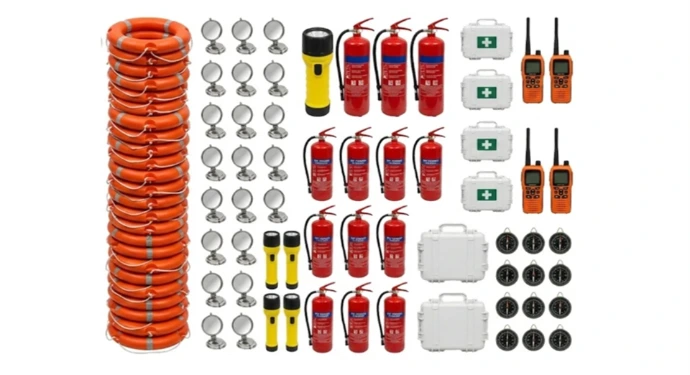 Este suministro exhaustivo abarca todas las áreas críticas de seguridad: Salvamento (aros salvavidas y señalización), Respuesta a Emergencias (extintores portátiles y primeros auxilios) y Navegación Esencial (radio VHF con GPS, compases y luces).